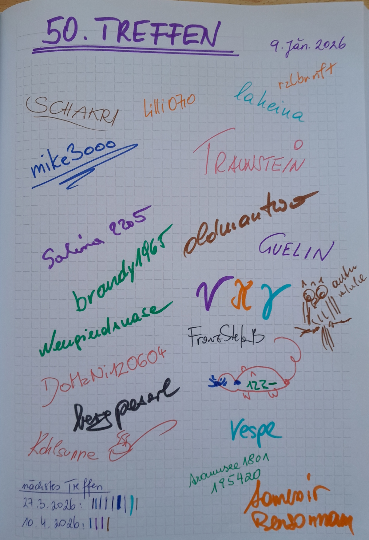 Zum 50. Treffen hat mike3000 für uns eine tolle Torte organisiert, 123-maus hat Deko mitgebracht und rzlbrnft überraschte uns mit seiner Anwesenheit . So war es nicht verwunderlich, dass die Stimmung wieder großartig war und es diesmal etwas länger wurde….